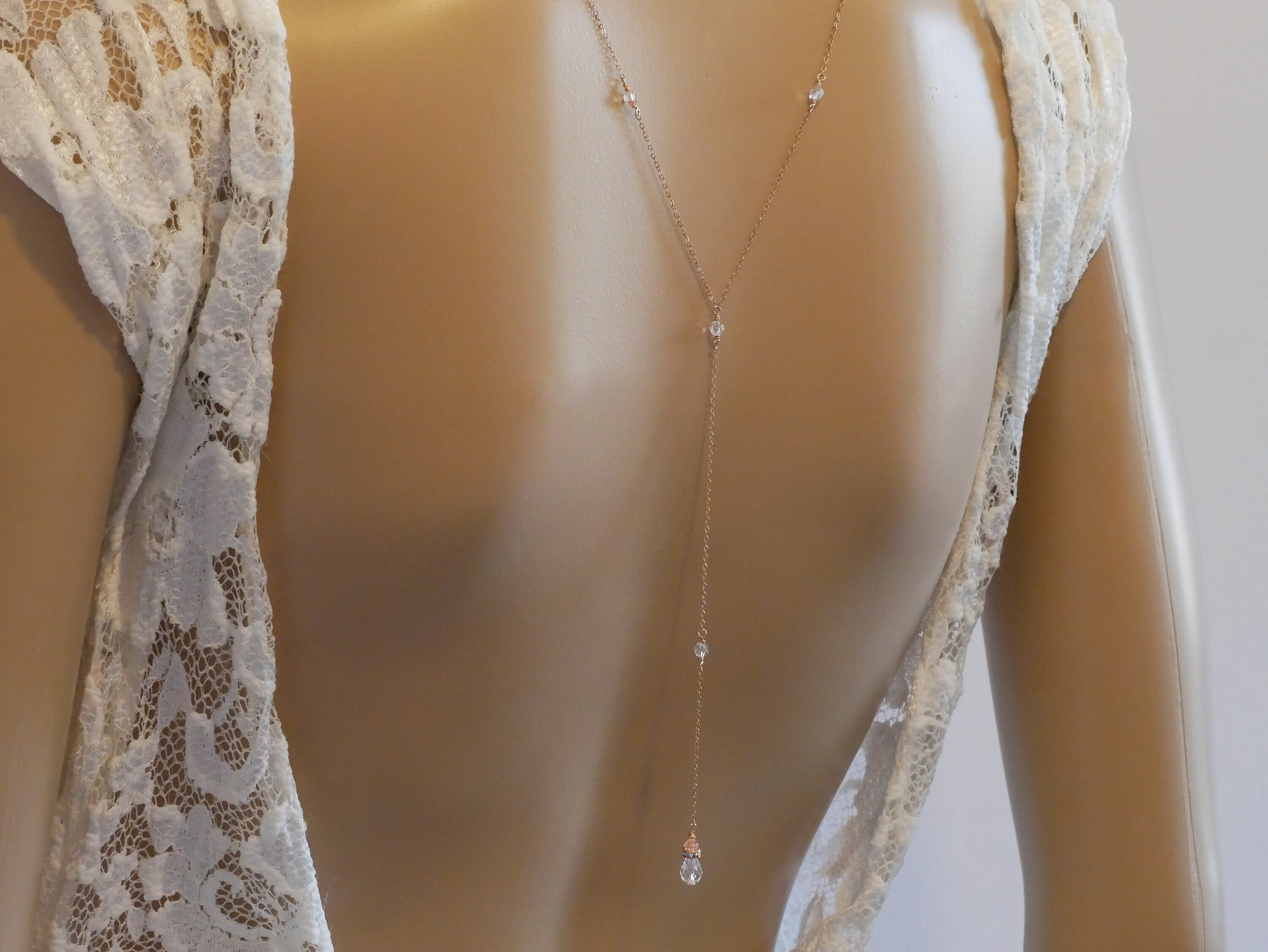 Crystal or pearl Backdrop y choker necklace, backless dress jewellery in silver, rose gold, gold or Sterling silver.