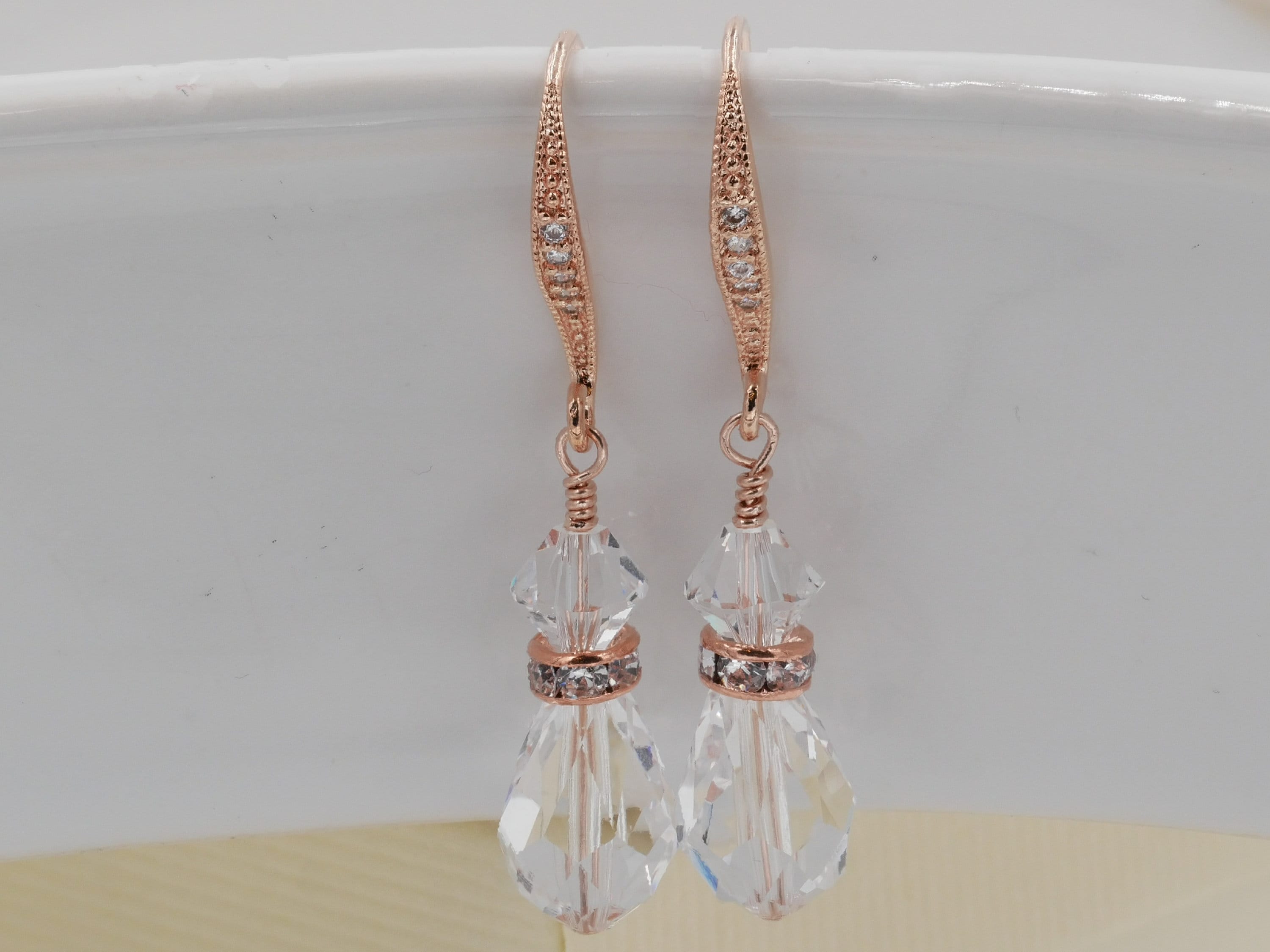 pictures 6,7,8 and 9 shows the Swarovski pearl and a cubic zirconia coloured drop at the end - the cubic zirconia piece is set in a plated setting.