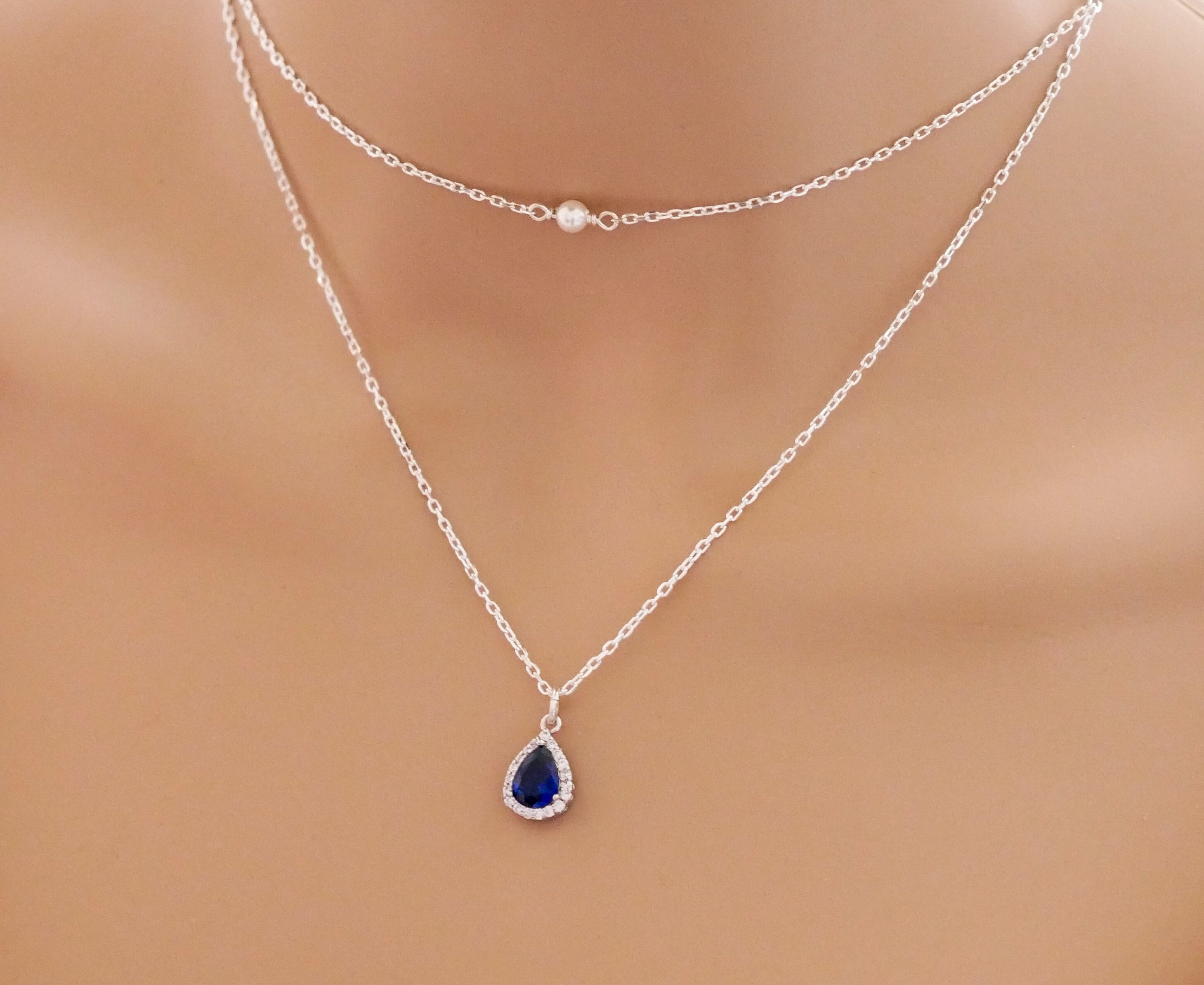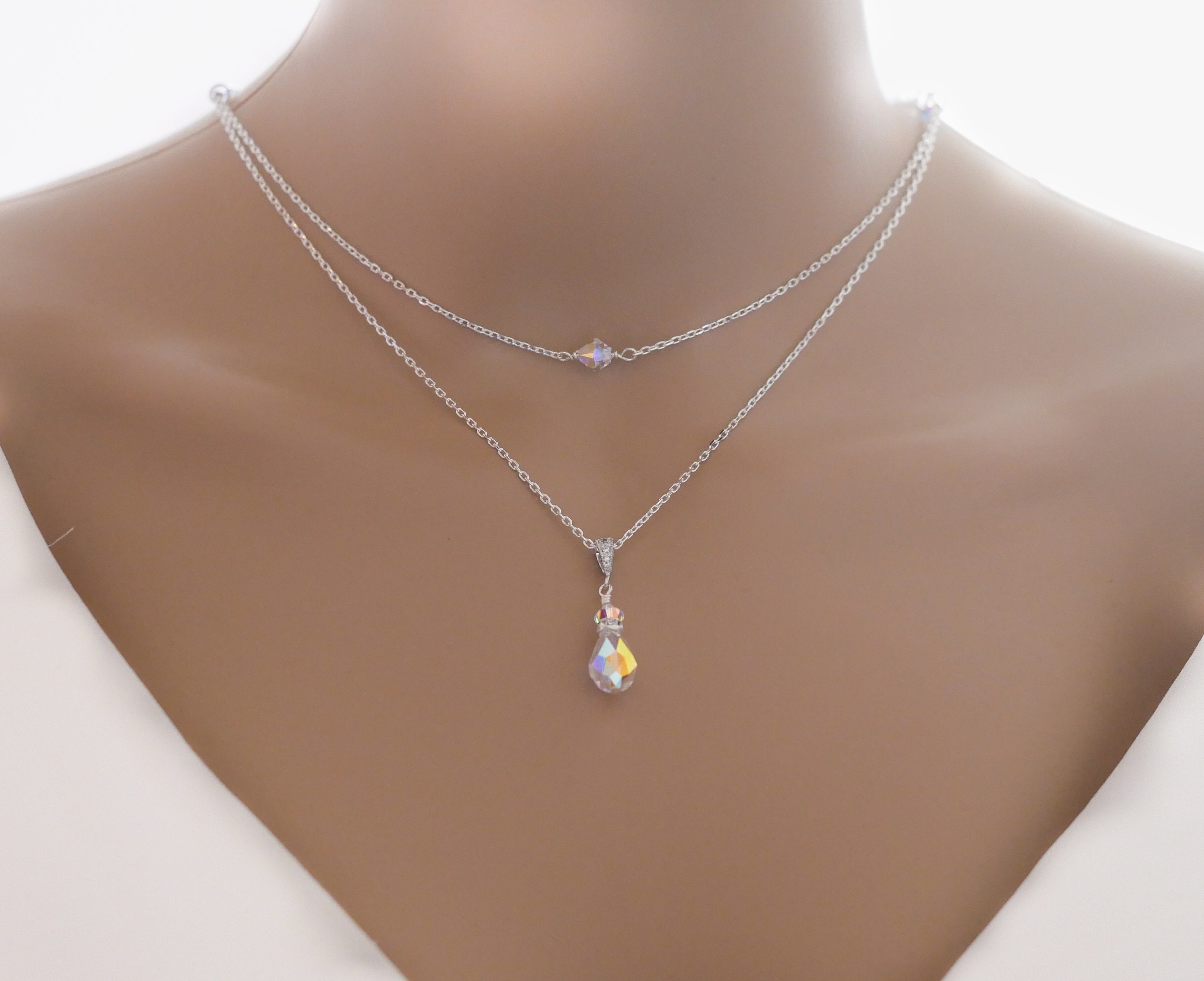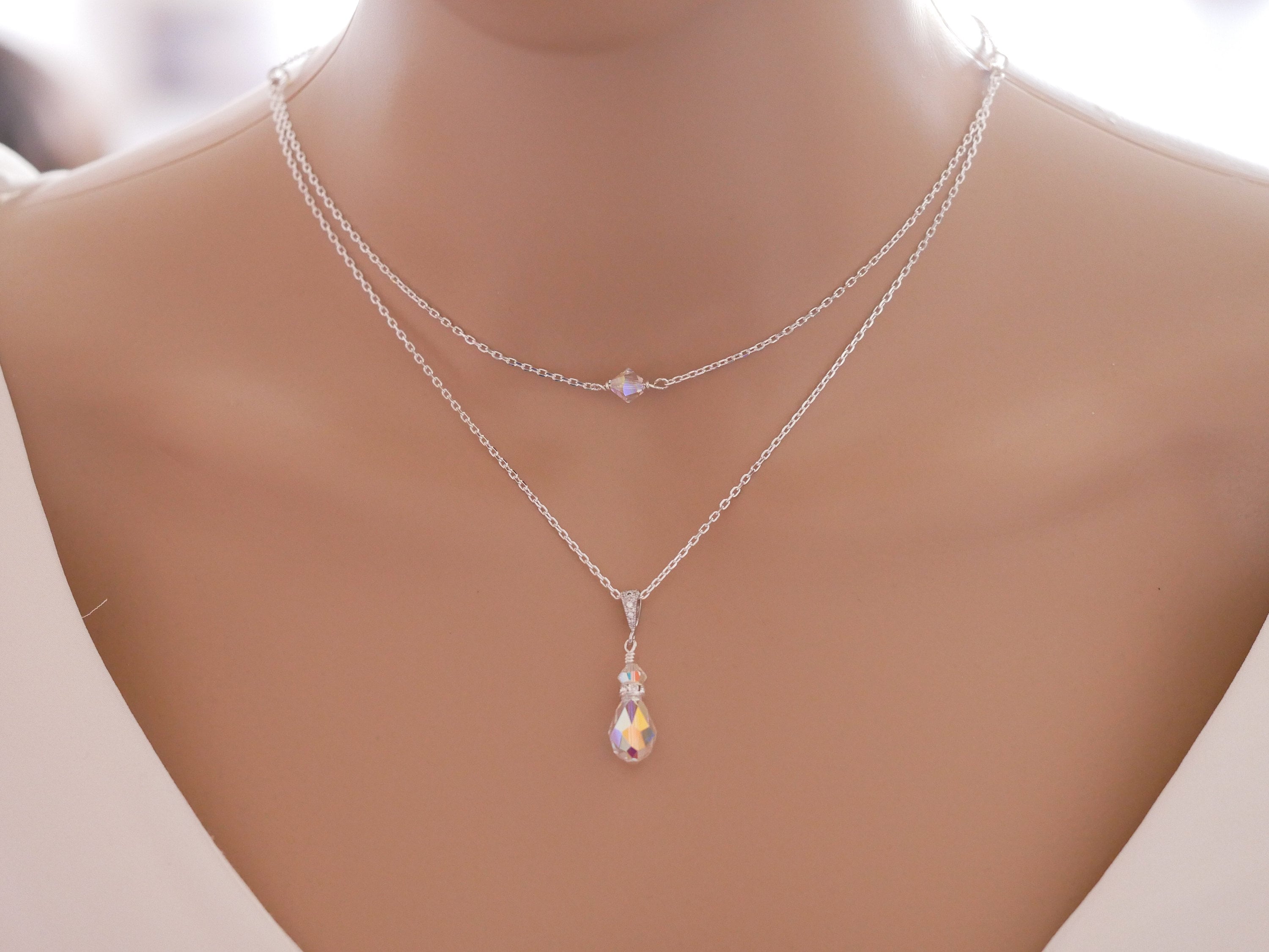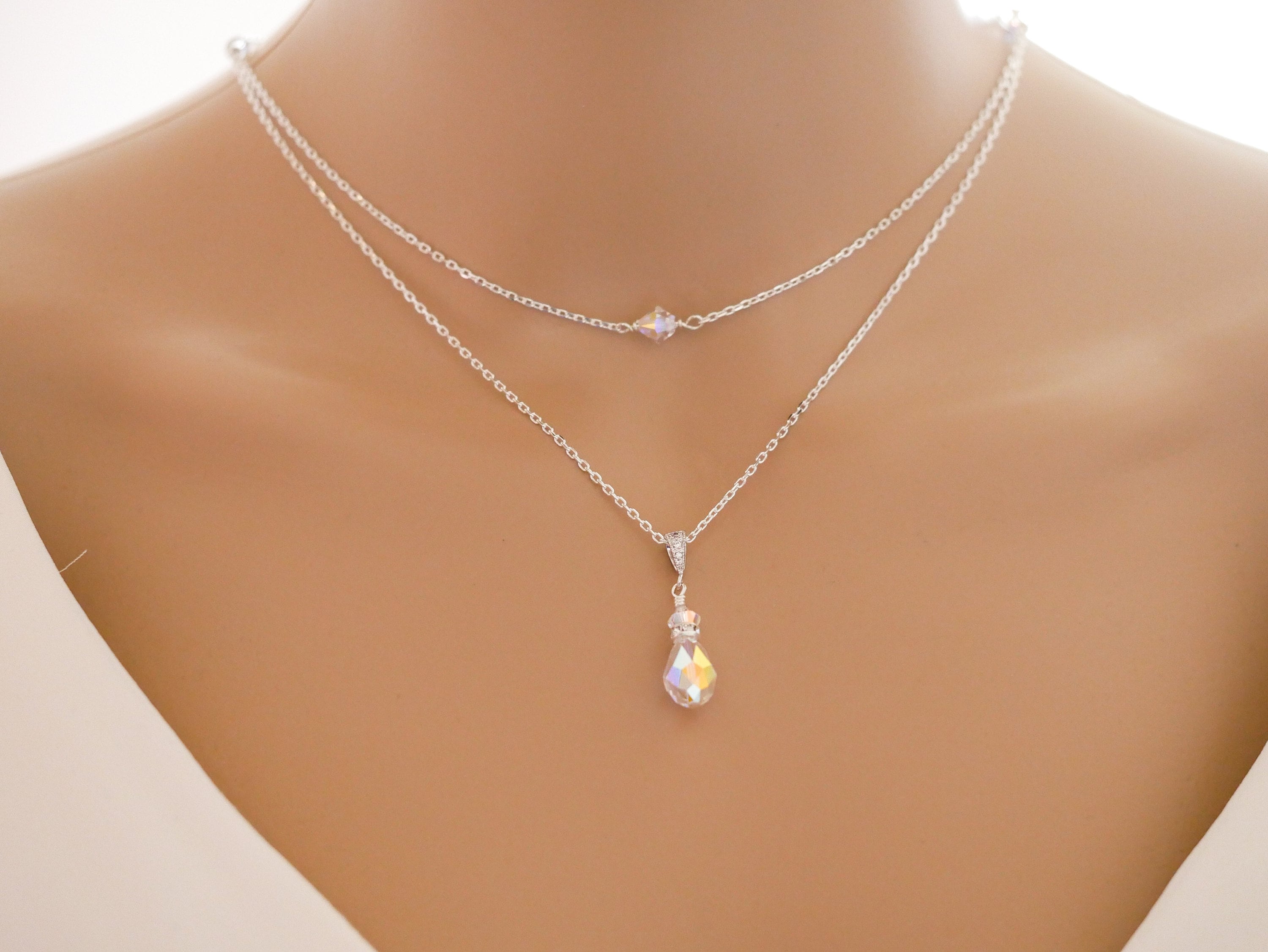 Layered crystal or pearl pendant and choker necklace with option to add a matching backdrop chain and earrings