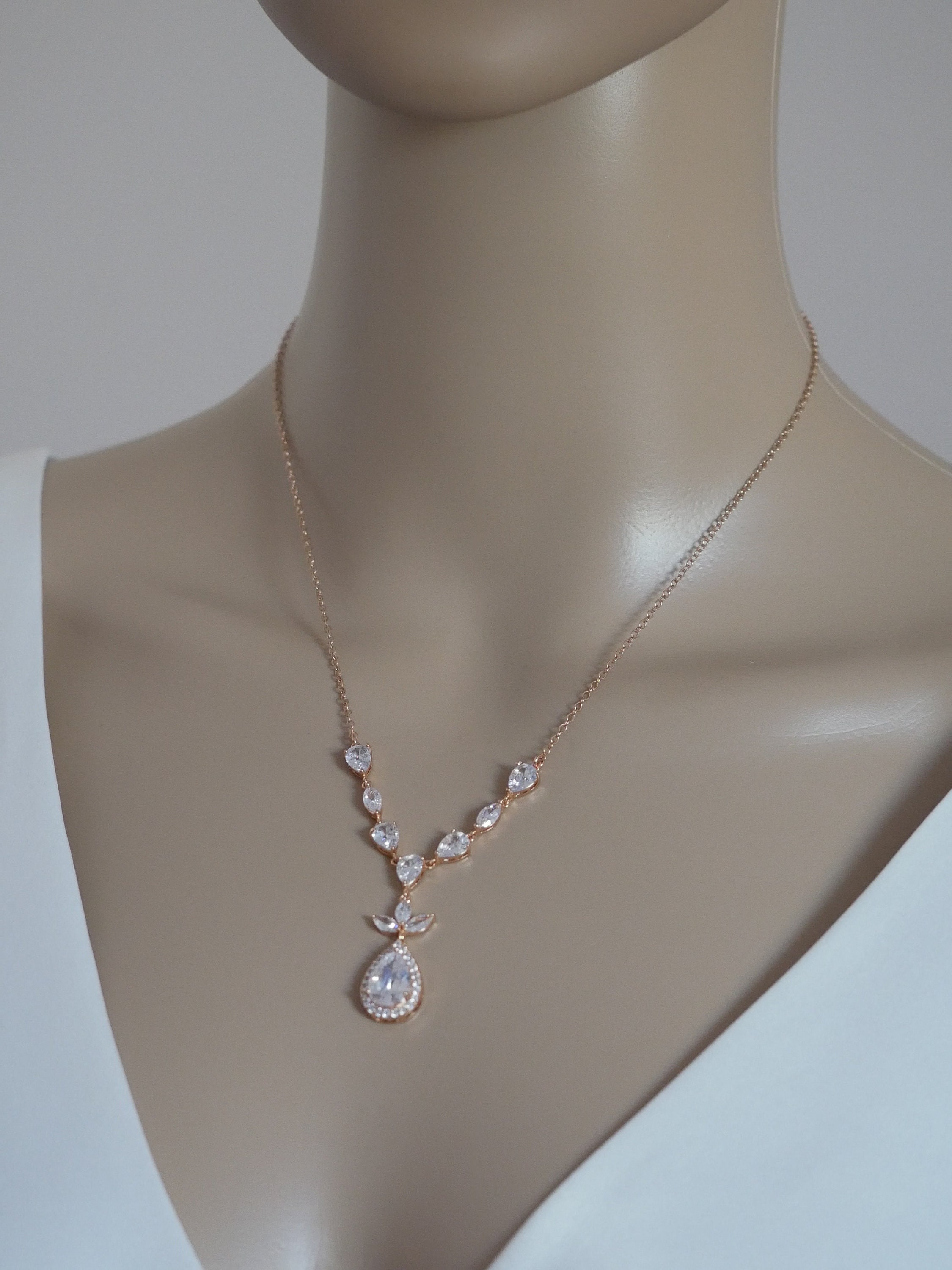 Custom jewellery, with beautiful cubic zirconia encrusted Leaf shape connectors which makes this Necklace set a truly unique piece, custom designed by Sharon at Sophia Beau.