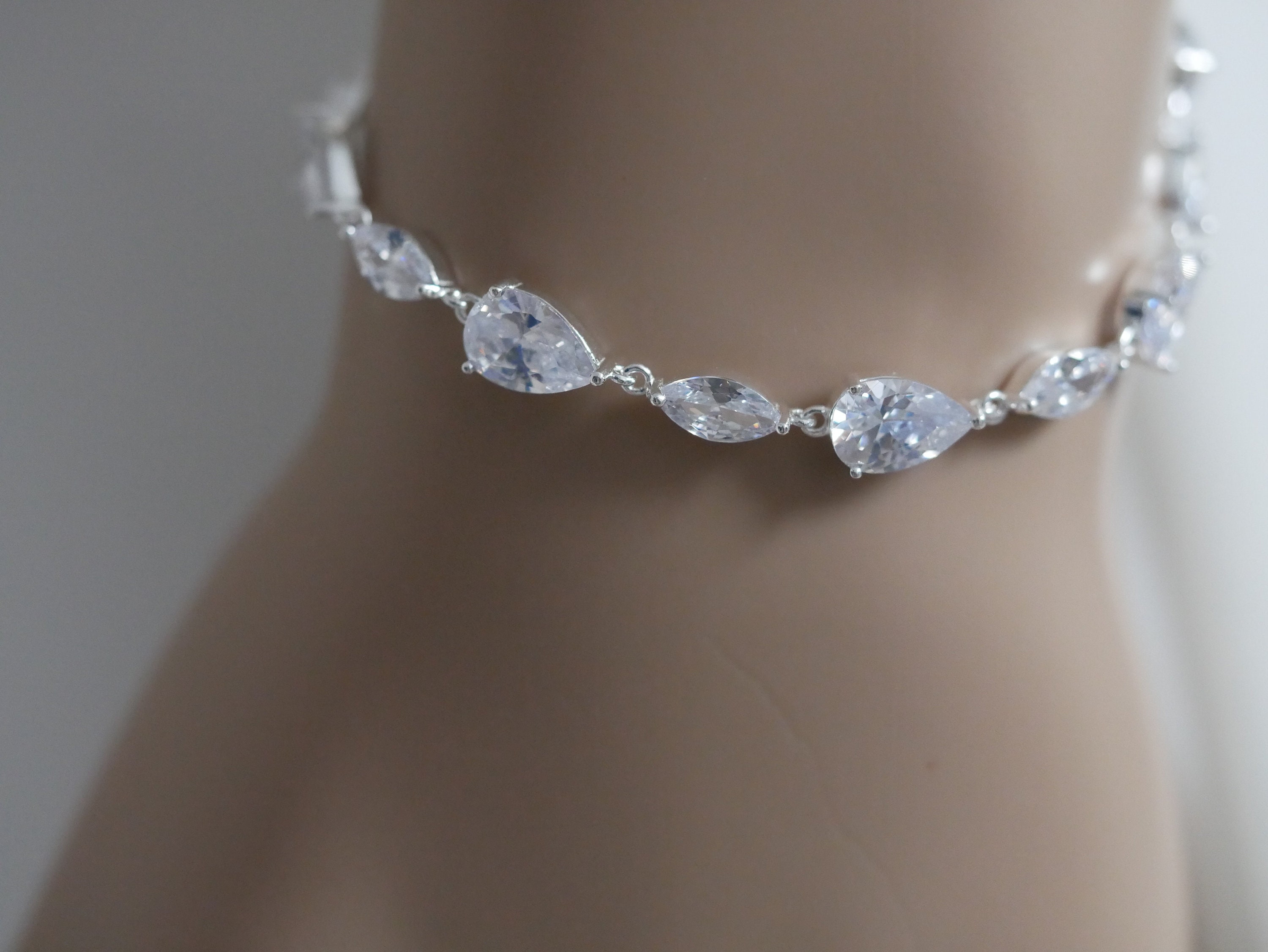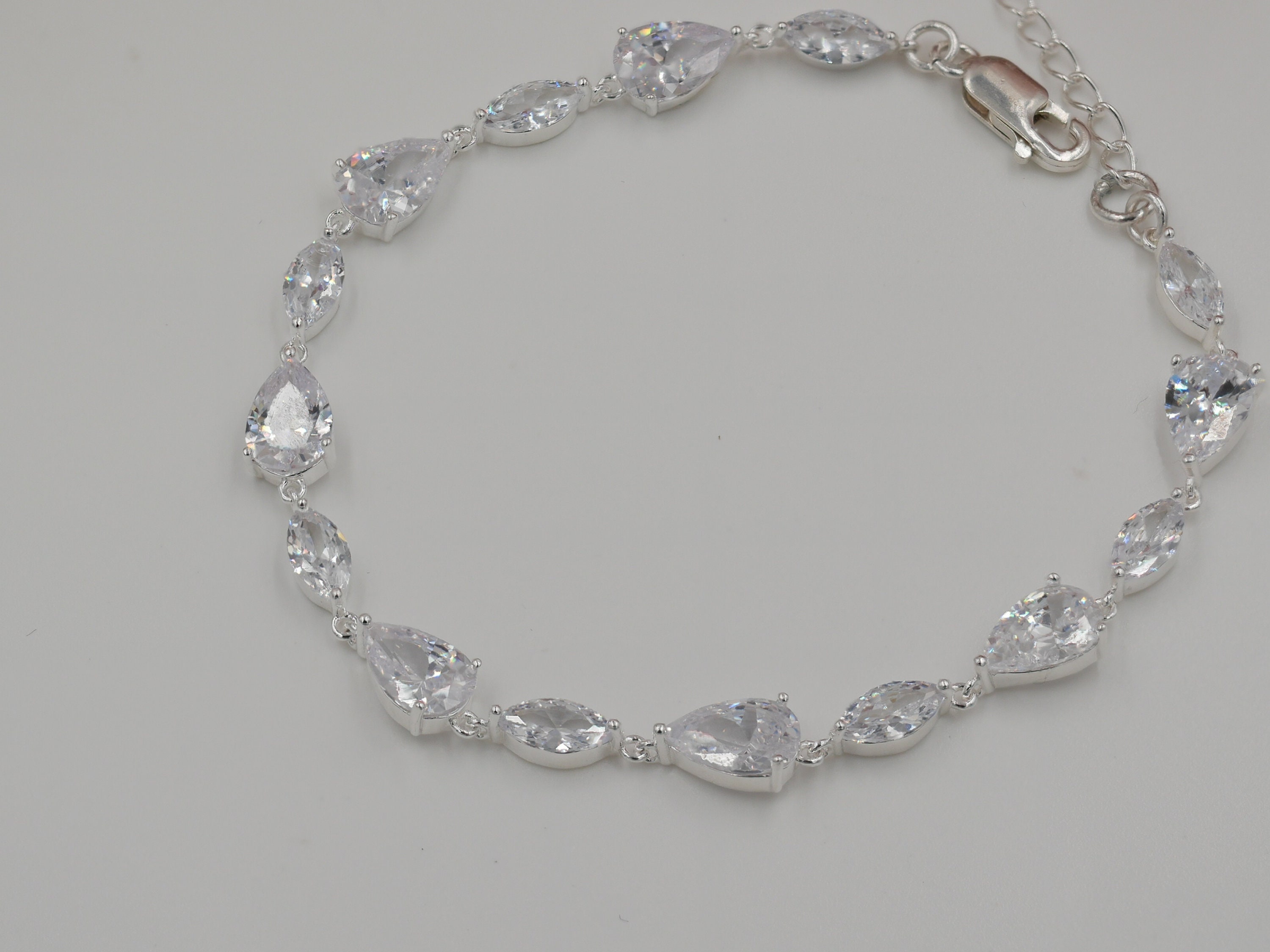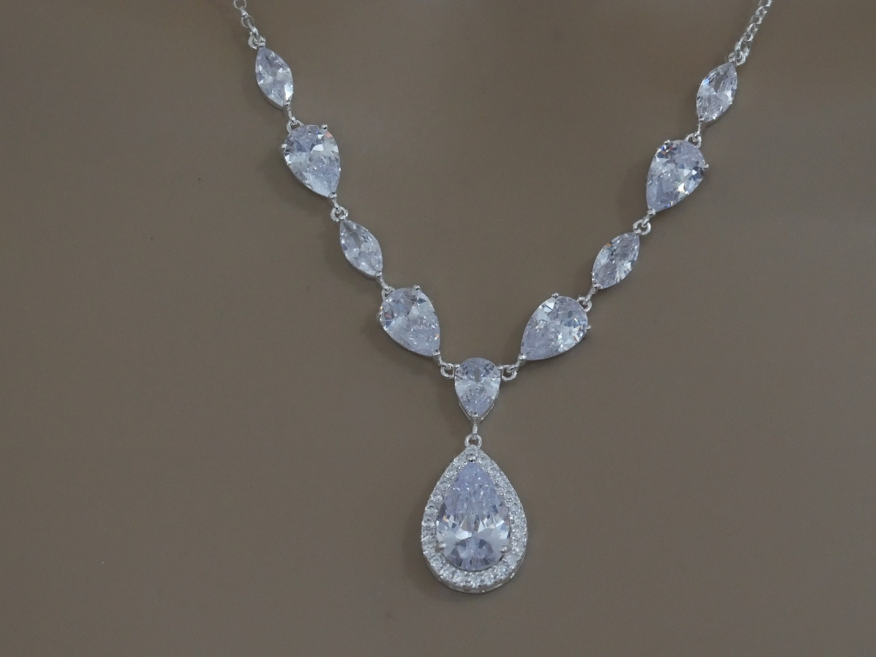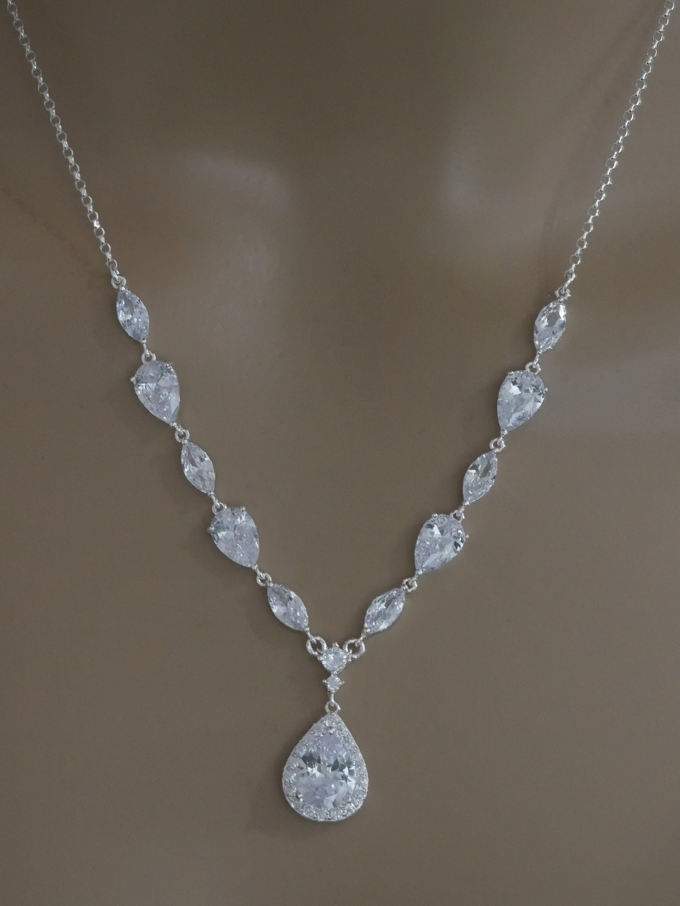 Bridal or prom sterling silver sweetheart necklace with a choice to add matching earrings, Backdrop chain and bracelet.