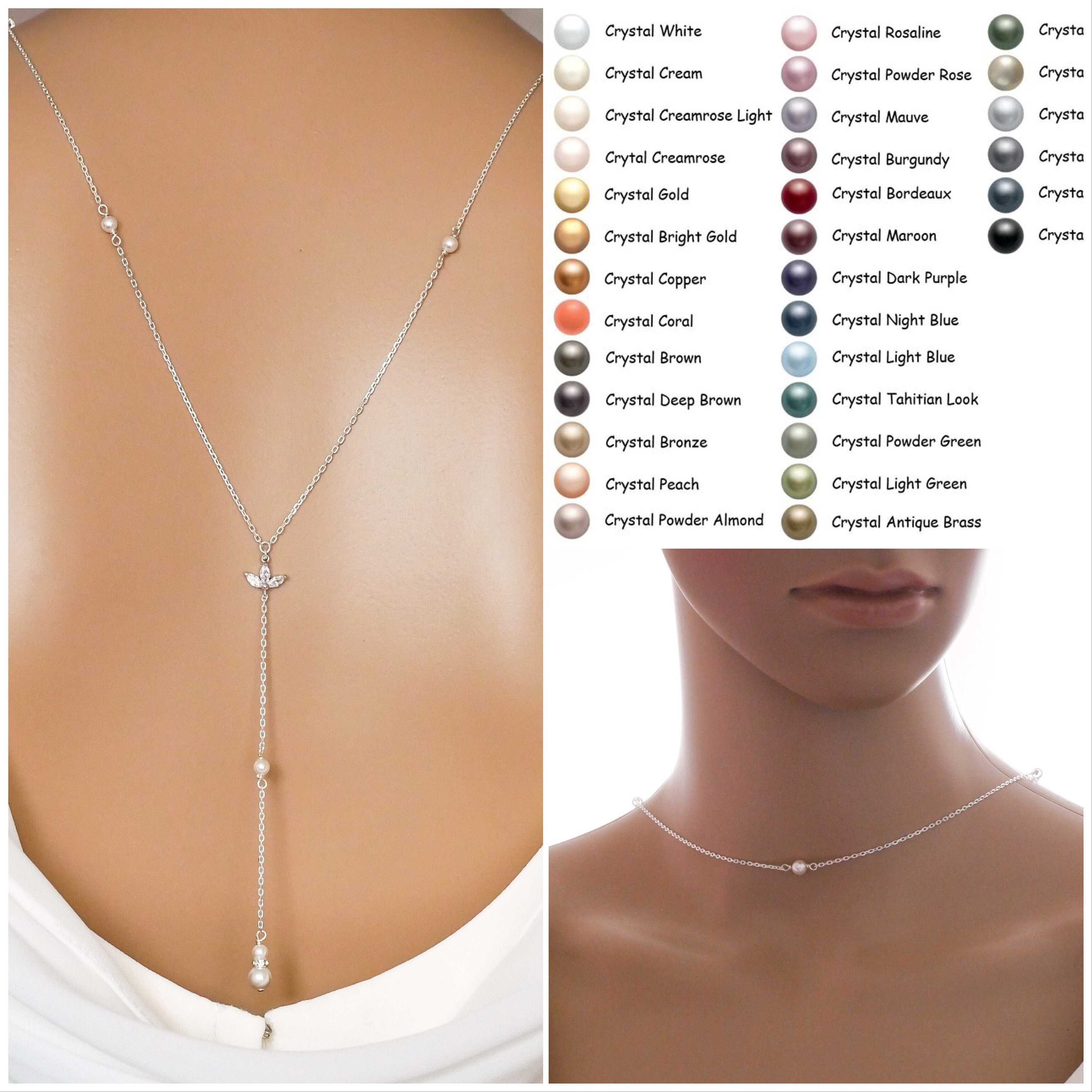 Swarovski pearl or Crystal Backdrop necklace, y lariat one piece choker, finished in your choice of rose gold filled, gold filled or Sterling silver.