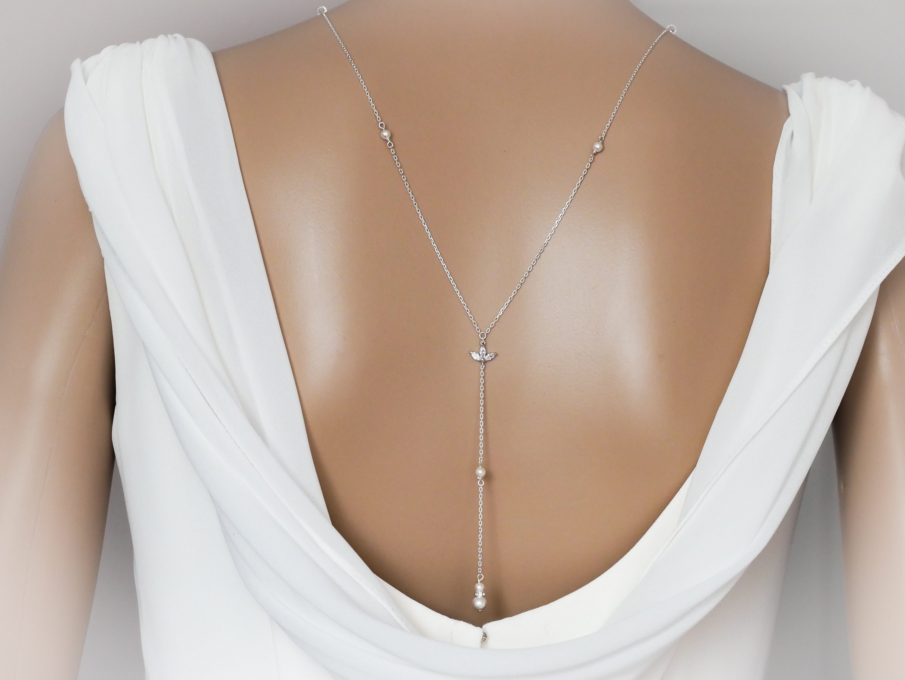 With a beautiful cubic zirconia leaf connector to sit in the centre of your back